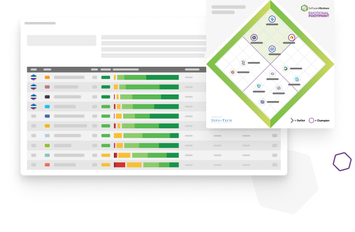 Our unique Emotional Footprint measures high-level user sentiment towards the client-vendor relationship and product effectiveness. While purchasing decisions shouldn't be based on emotions, it's important to know what you're getting into.